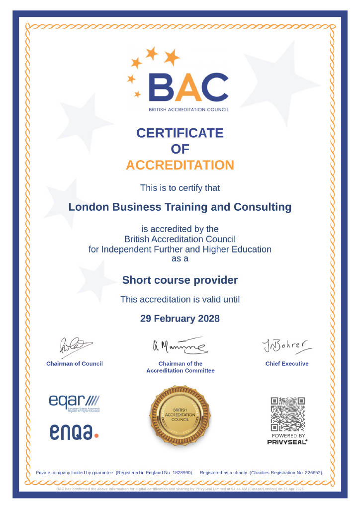 All LBTC courses are BAC-accredited, which means the certificates you receive are officially recognised for their quality and standards. For international participants, attending a BAC-accredited institution can also help strengthen the credibility of your standard visitor visa application, as the BAC is a body recognised by UKVI.